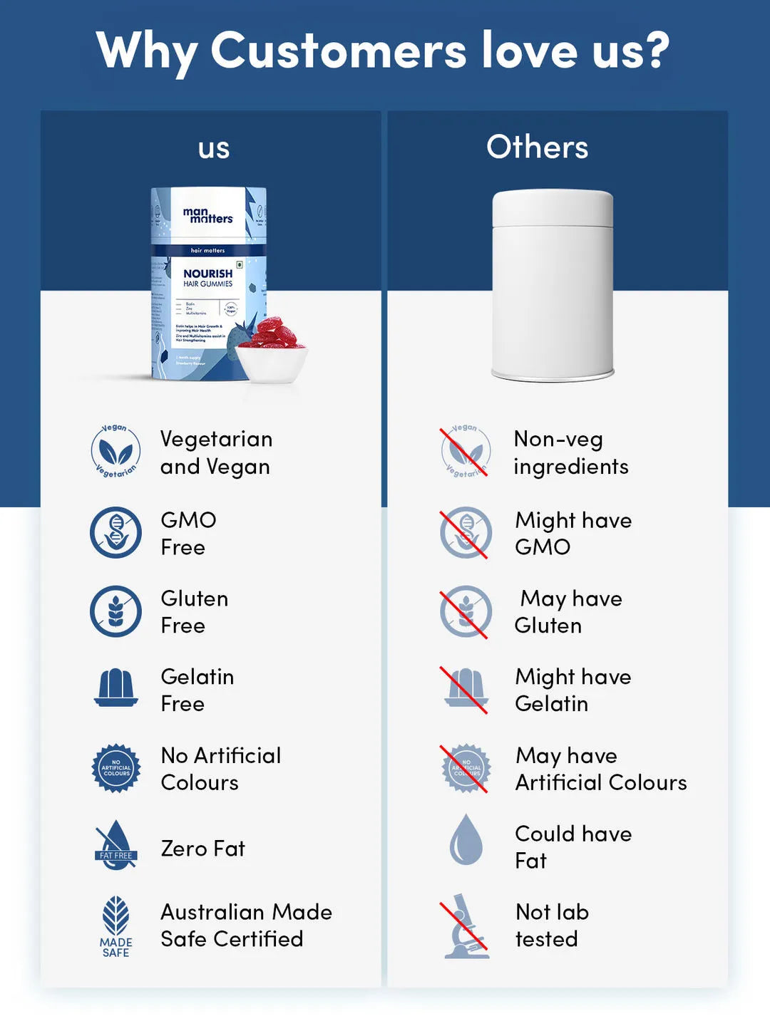 Delivers a precise dose of essential vitamins that are often missing from your daily diet, targeting the root cause of hair thinning.